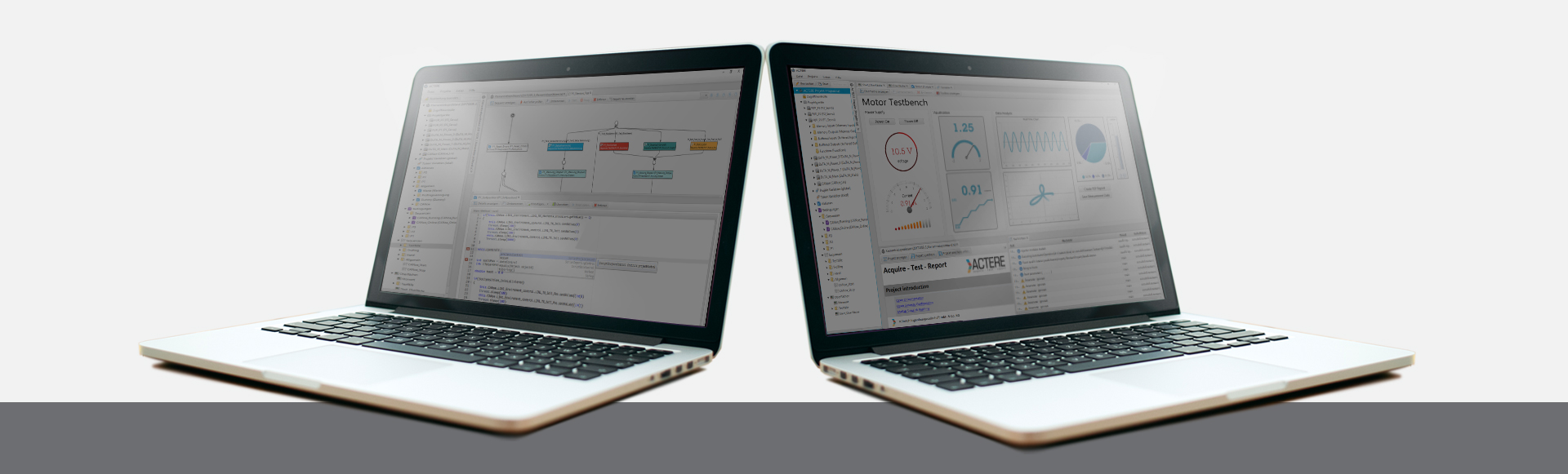 can run concurrently or alternatively. As a script language, ACTERE uses Groovy based on Java. It offers open and comprehensive interfaces to automotive and automation technology for communication and I / Os. ACTERE allows you to carry out measurements, documentation, assessment and analysis online (all actions take place during and simultaneously to the measurement.).
